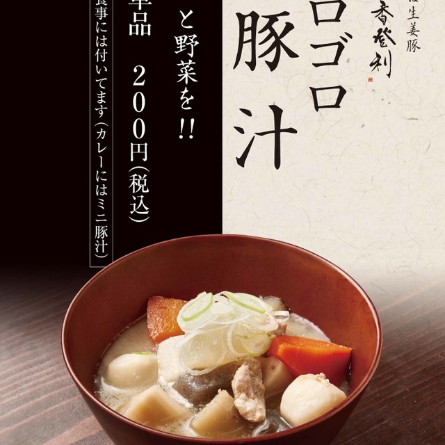 ニンニクと生姜の香り漂うおいしさ…肉厚なステーキのようなロース肉が乗っております。豚汁も美味でございました。
